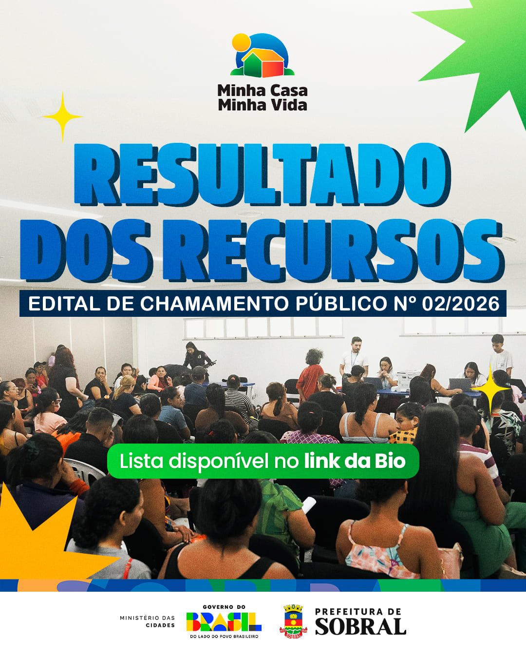 A Prefeitura de Sobral divulgou, nesta segunda-feira (13/4), o resultado final do processo de seleção do Programa Minha Casa, Minha Vida – Faixa 1 (Urbano), após a análise dos recursos apresentados pelas famílias inscritas no Edital de Chamamento Público nº 02/2026. A etapa marca a conclusão da fase